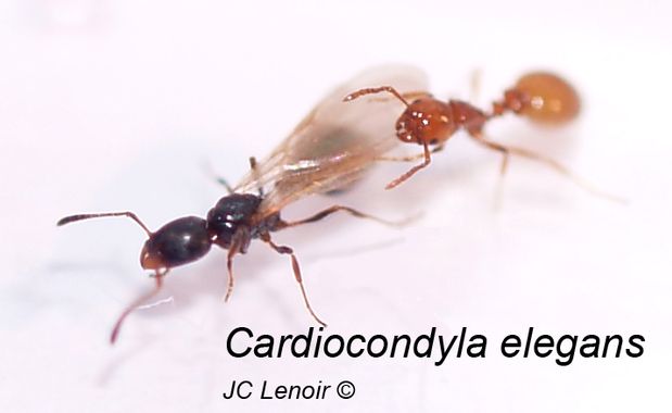Jean-Christophe Lenoir a fait sa thèse sur Cardiocondyla elegans qui vit sur les bords de Loire (Pdf du résumé de la thèse, voir Lenoir JC 2005 et 2006).