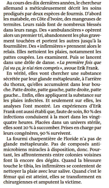 - les fourmis trop blessées sont abandonnées : "les fourmis
