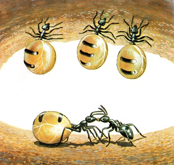 Dans Gérard et les fourmis on parle des fourmis réservoir, fourmis bombonnes qui peuvent tomber lourdement et éclatent.