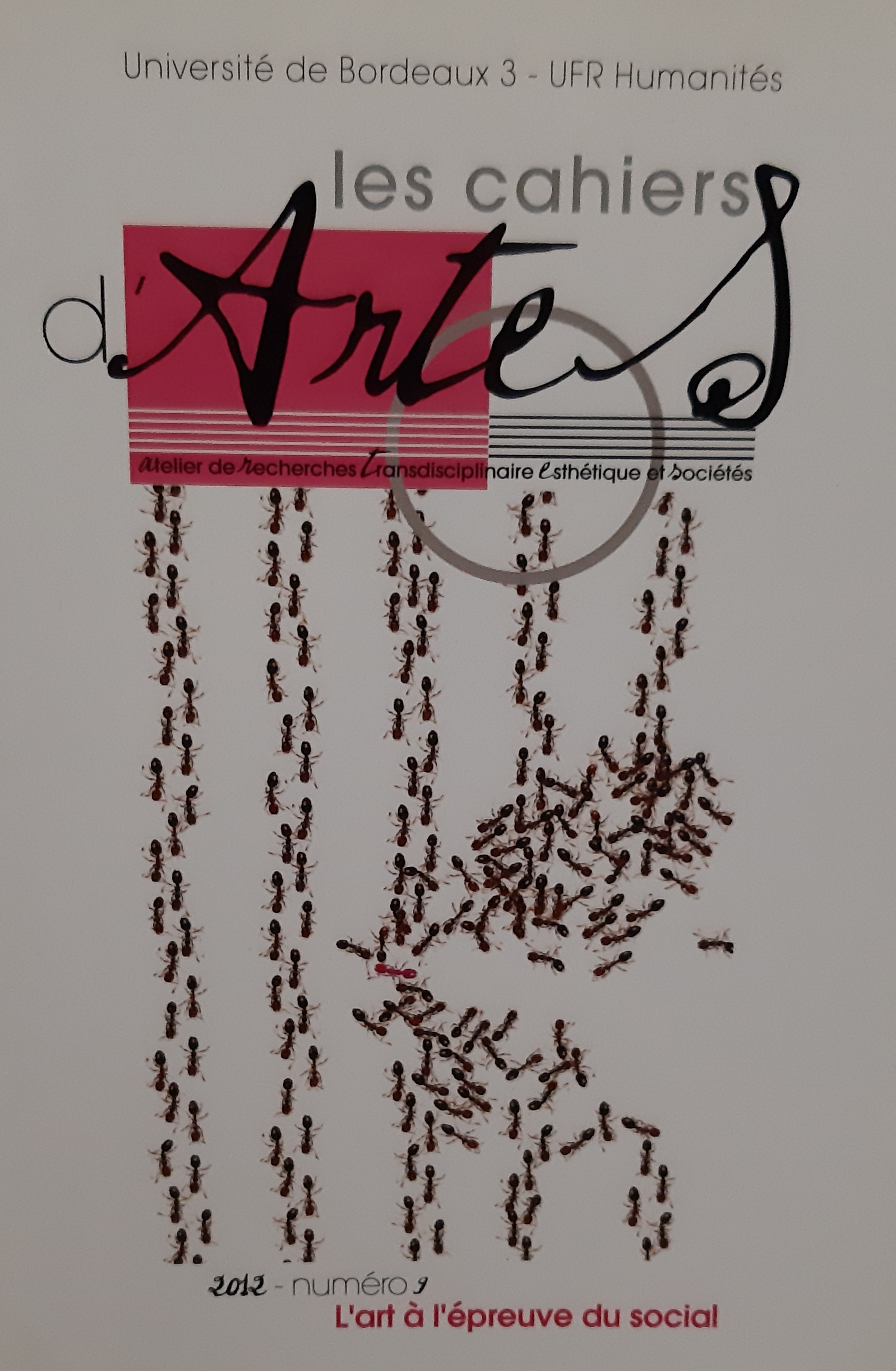 Une couverture de livre : L'art à l'épreuve du social (Les cahiers d'Artes, Université de Bordeaux 3, 2012)