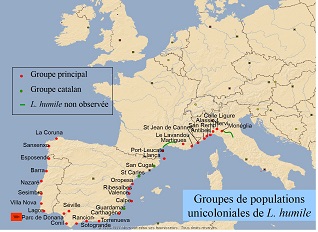 T. Giraud s'est beaucoup intéressée aux fourmis (Voir l'interview de T. Giraud du 2 janvier 2021). Elle a en particulier fait son postdoc chez Laurent Keller à Lausanne sur la fourmi d'Argentine avec une publication aux PNAS qui a fait date (Giraud et al 2002, de nombreux articles dans la presse, par exemple Pour la Science 2002). On y trouve en particulier la fameuse répartion des deux supercolonies, la principale et la catalane. On sait d'ailleurs maintenant qu'il y a une troisième colonie (voir Fourmi d'Argentine).