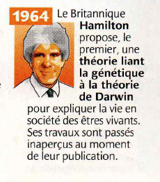 Et aussi Hamilton, W. D. (1972). Altruism and related phenomena, mainly in social insects. Annu. Rev. Ecol. Syst. 3: 193-232. Résumé