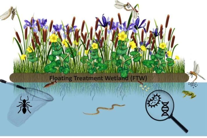 Des radeaux avec des plantes en zones humides sont favorables à la biodiversité, en particulier au niveau bactéries, mais aussi beaucoup pour les libellules. Sur l'image il y a une fourmi, mais pas de fourmis dans les inventaires.. pour l'image ?