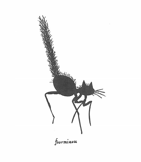 Une fourmi parmi de nombreux dessins de Bruno Bunari, artiste plasticien italien (Legoutde M, sept 2025). Voir Wikipédia