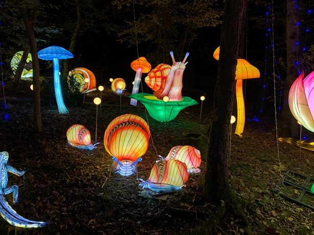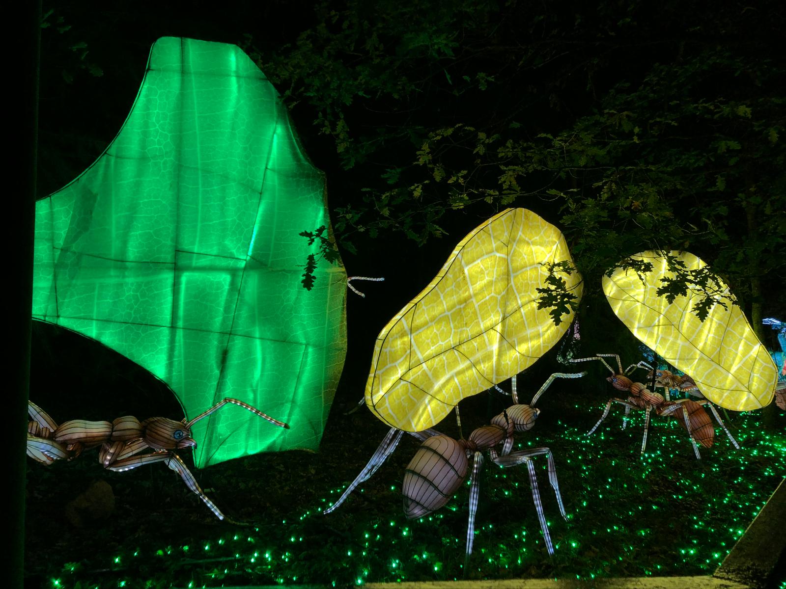 Aline : Parc à faire en journée pour voir les animaux (les vivants..) avec les décorations en papier peint. Et en fin d’après midi ( tout l’hiver, penser à prendre des vêtements chauds, bonnet) il y a le « festival des lumières sauvages » les décorations s’illuminent. C’est juste whaou, grandiose , époustouflant. Une belle découverte. Les animaux sont mis en action, les fourmis transportent des feuilles.