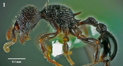 Pour rire : Myopias hollandi une espèce dédiée à notre ancien président, décrite par Forel en 1901.. Johan Billen vient de décrire de nouvelles glandes thoraciques chez cette fourmi (Billen et Ito 2018).