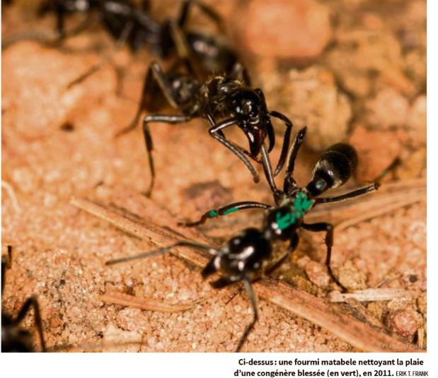 - les fourmis trop blessées sont abandonnées : "les fourmis