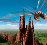 d'une faille, les fourmis magnans attaquent la termitière, véritable