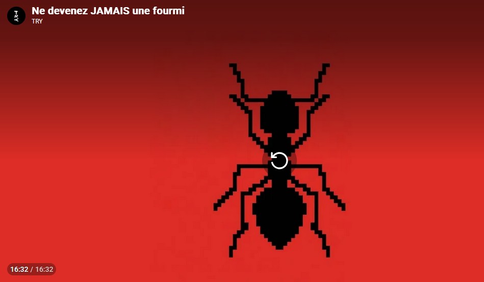 Ne devenez jamais une fourmi. Film documentaire sur la vie des fourmis (NE DEVENEZ JAMAIS UNE FOURMI juste try, YouTube 27 mars 2026, 16 min)