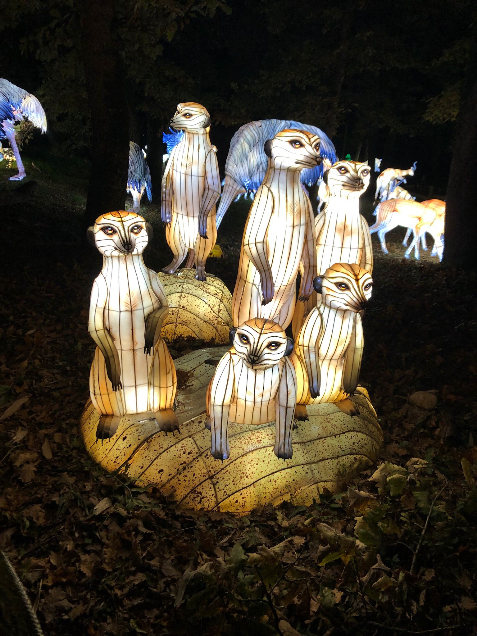 Aline : Parc à faire en journée pour voir les animaux (les vivants..) avec les décorations en papier peint. Et en fin d’après midi ( tout l’hiver, penser à prendre des vêtements chauds, bonnet) il y a le « festival des lumières sauvages » les décorations s’illuminent. C’est juste whaou, grandiose , époustouflant. Une belle découverte. Les animaux sont mis en action, les fourmis transportent des feuilles.