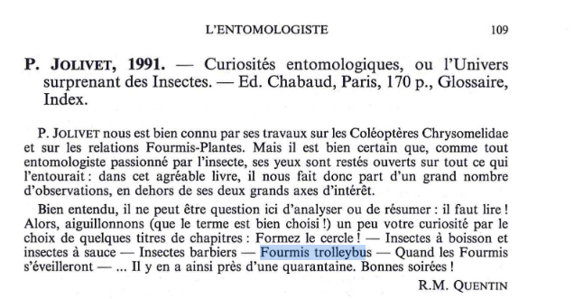 et Pseudomyrmex. Dans son livre Jolivet écrivait qu'un