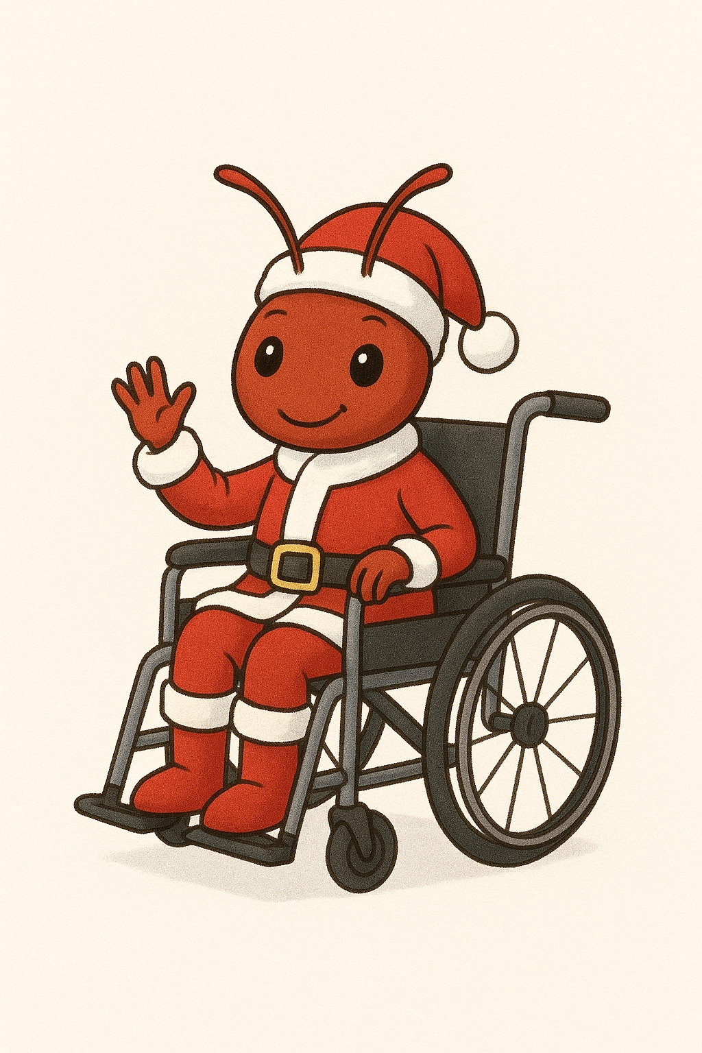 "Autre temps, autres moeurs. Le Père Noël doit changer sa manière de distribuer les cadeaux: autrefois le Père Noël passait par les cheminées. Maintenant,à cause de toutes ces antennes de télévision, ça n'est plus possible! Le Père Noël et son renne, Scrogneugneu, doivent absolument trouver une solution... (à partir de 3 ans)". Il va se faire aider par les fourmis.