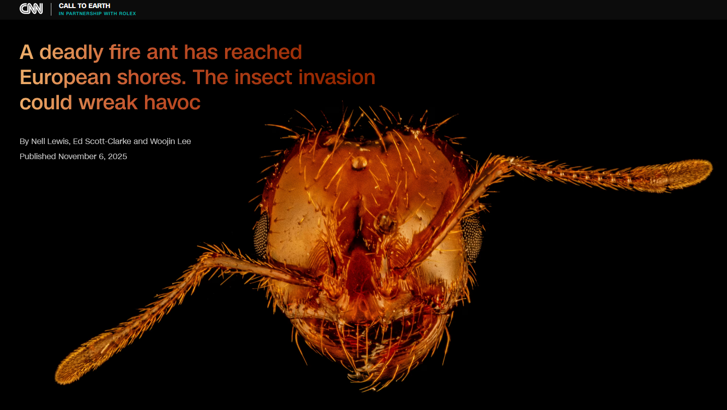 A deadly fire ant has reached European shores. The insect invasion could wreak havoc. By Nell Lewis, Ed Scott-Clarke and Woojin Lee, 6 nov 2025 (Merci Andrea Dejean).