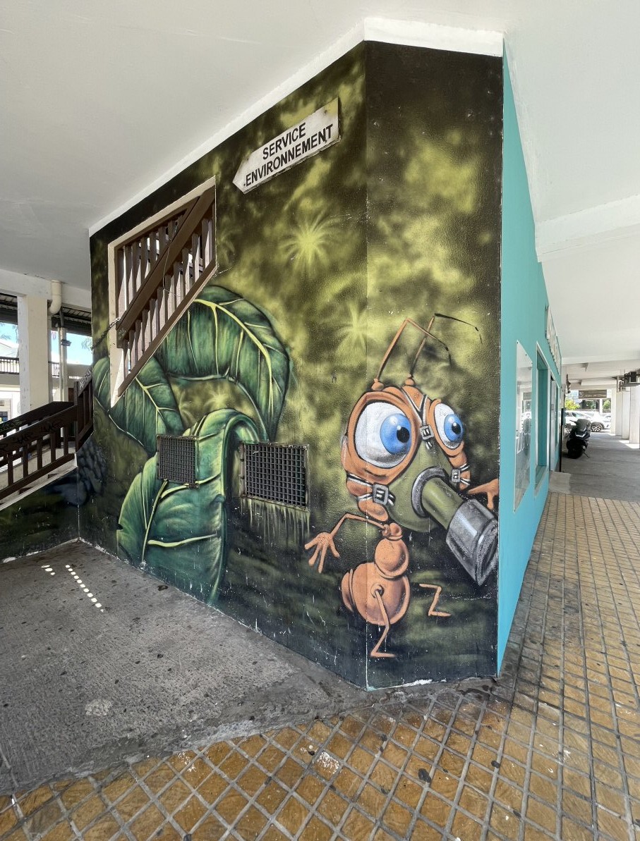 Les Gouzous de Jaace à La Réunion (merci Claude Lebas, 28 février 2026). Les gouzous sont des personnages d'un célèbre spécialiste d'Art Sreet. Les fourmis ont des masques, à cause de la pollution ?