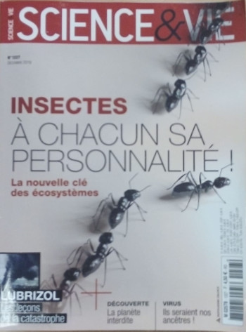 Un long article dans Science et Vie de Décembre porte sur la personnalité des insectes et autres invertébrés pour 5 caractères (audace / prudence, activité / sédentarité, curiosité / indifférence, sociabilité / asociabilité et agressivité / docilité) et les conséquences sur les écosystèmes encore peu connues. Même les bactéries ont aussi leur caractère (Nouyrigat 2019). Personnalités (sans jeu de mot) sur les insectes sociaux citées dans ce texte : Jean-Louis Deneubourg, Martin Giurfa, Patrizia d'Ettorre, Olivier Blight. Quelques pages : les cafards (Planas-Sitja et al 2018, Planas-Sitja 2020), la fourmi d'Argentine et les abeilles (une expérience à 7 jours qui les rend "asociales", exagéré, elles sont tout simplement indifférentes).
