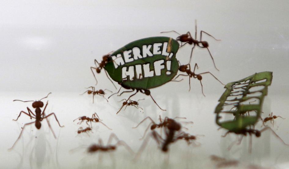 Le zoo de Cologne a profité de la visite de deux jours de la chancelière Angela Merkel au Brésil, à partir de mercredi 19 août au soir, pour organiser, en collaboration avec le Fonds mondial pour la nature (WWF), une manifestation d’un nouveau genre en faveur de la protection de la forêt amazonienne. Des petits tracts appelant la chancelière à l’aide ont été distribués à des fourmis tropicales « coupeuses de feuille », qui les brandissent en traversant leur fourmilière… |