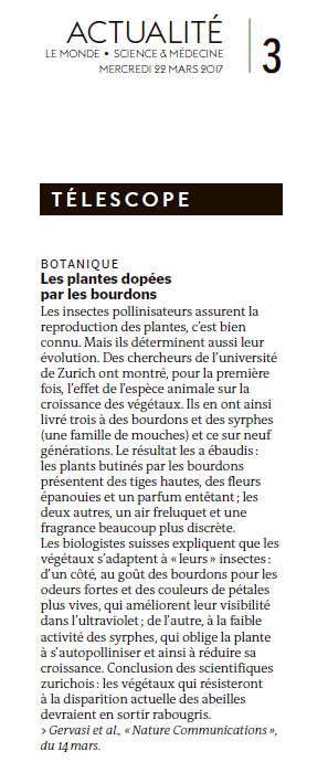 - Le Monde (2017). Les plantes dopées par les bourdons. Le Monde Science