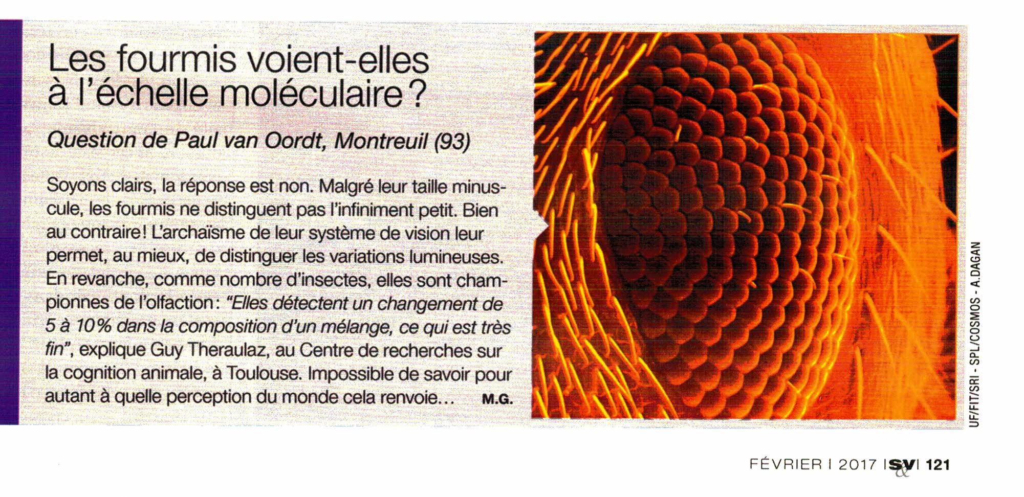 Les fourmis voient-elles à l'échelle moléculaire ? Science & Vie n°1193, février 2017, p. 121.